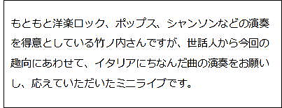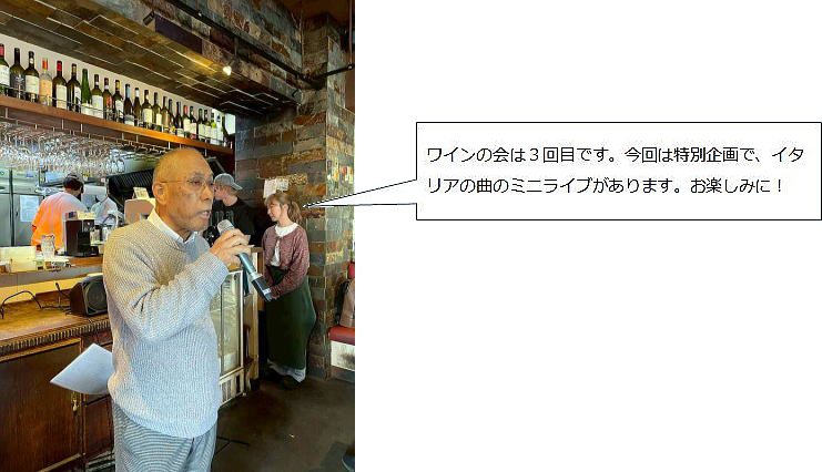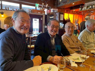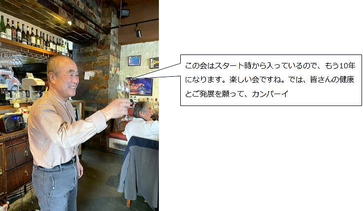 今年度下期の例会は、神田小川町にあるカジュアルなイタリアンレストランを貸し切り、ワインを気軽に 楽しもうという趣向で開催しました。イタリアはフランスと常に生産量のトップを争う屈指のワイン生産 国で、魅力的で多彩なワインが揃っており、今回は、イタリアを代表する様なスパークリングワイン、白 ワイン、赤ワインを用意しました。仲間と近況や昔話などを歓談しながら味わうお酒は実にいいもんです。 これだから酒文化探訪はやめられませんね。 |